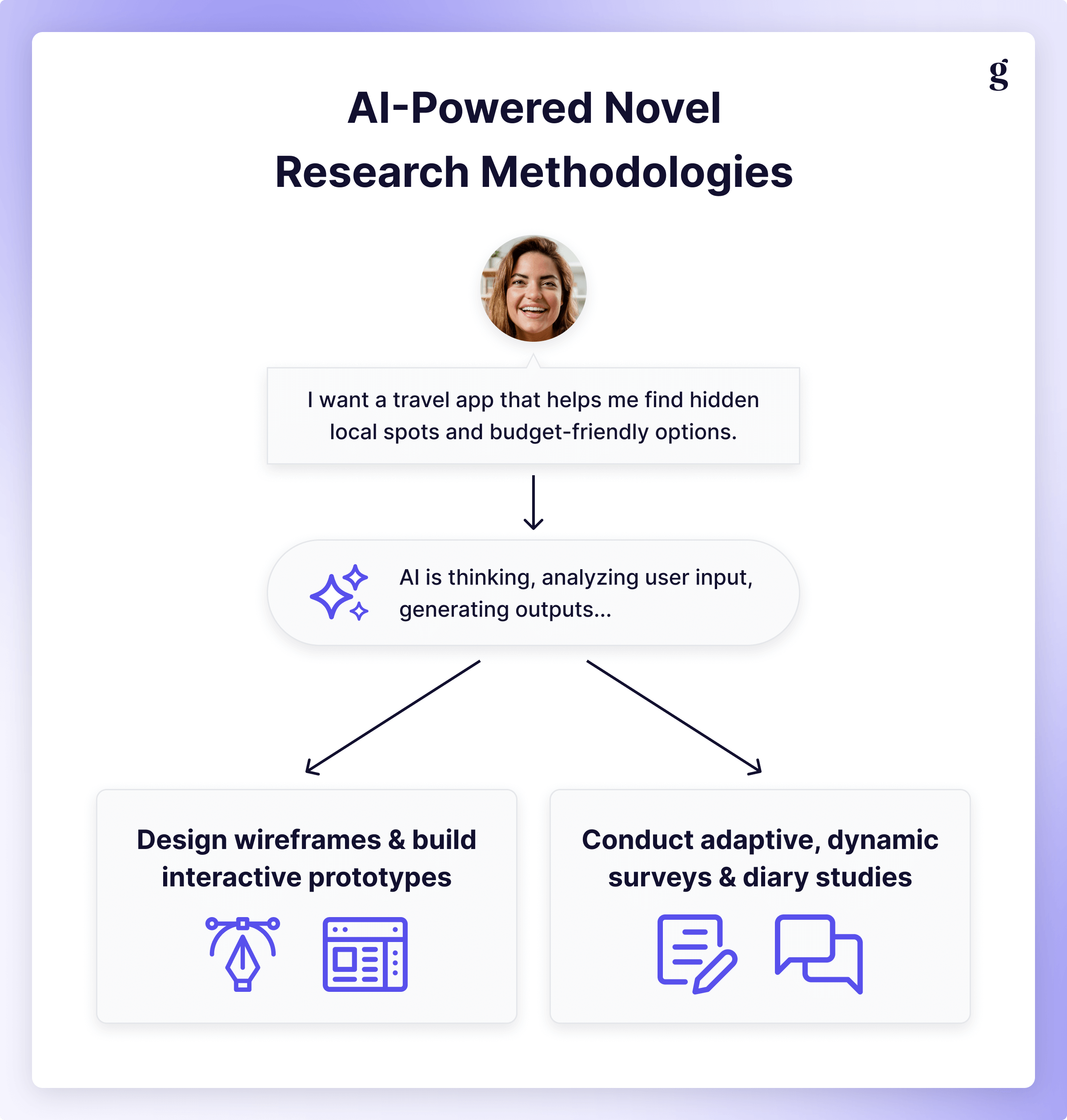 What if you could run a hybrid interview and concept test in a single session? Picture this: you conduct a traditional interview with a participant about their ideal travel planning experience. Halfway through, you pivot to concept testing where an AI agent generates a personalized mockup or storyboard integrating elements the participant just discussed. By training a custom GPT or agent on the feature sets you're considering, you can have AI generate a few variants based on what's been described as the key pain points and get immediate feedback on those potential features.